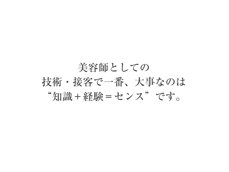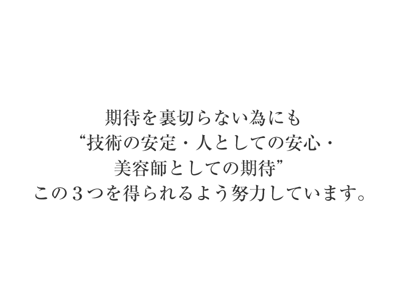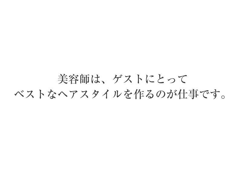 一人一人の大事な個性を大切に、ライフスタイルに合わせたベストなヘアスタイルを提案していきます。 髪の悩み・ご自宅のお手入れなど気軽に、ご相談下さい。