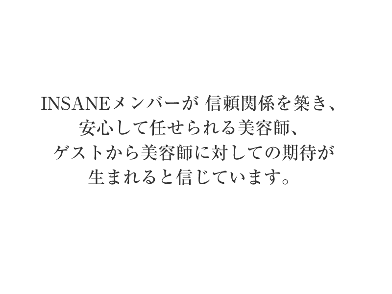 INSANE独自のオリジナル・カット "MoonShape(ムーン・シェイプ)"一人一人の髪質・毛量・毛流れに逆らわず、輪郭・頭の形に沿って 綺麗なバランス・再現のしやすいヘアスタイルにして魅せます。