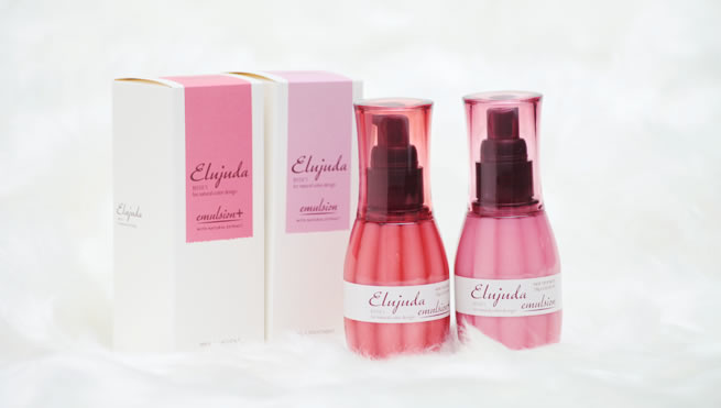 エルジューダエマルジョン(左)は細い髪用。エルジューヌ・エマルジョン+(右)は、普通~太い髪用です。